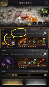 - 火曜の採取中は持っている中で最大の星のバッタに交換し、24h採取効率UPを使い、蟻王を脅して戦域バフを使用させよう!