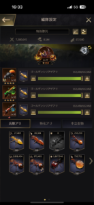 後は⑥番で、紫中立のヤデラをつけて星8の橙中立は2軍として使ってくのも良きです(*’▽’) 特化アリ対決の勝敗に2軍の強化は必須になるので、毎日協戦を付け外すより、星9になってエサにするまで2軍用と割り切って使うと、毎日のタスクが減るし、特化アリ対決勝ち易いし色々楽になると思います(*´ω`*)